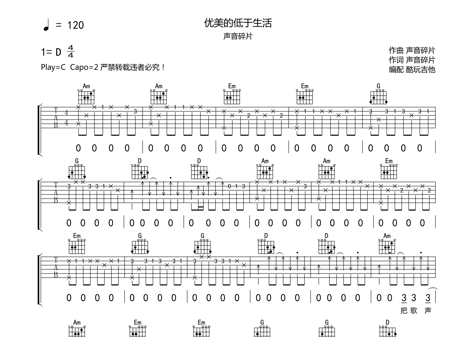 声音碎片《优美的低于生活》吉他谱-C调弹唱谱高清原版谱 微信/抖音:kwjitar