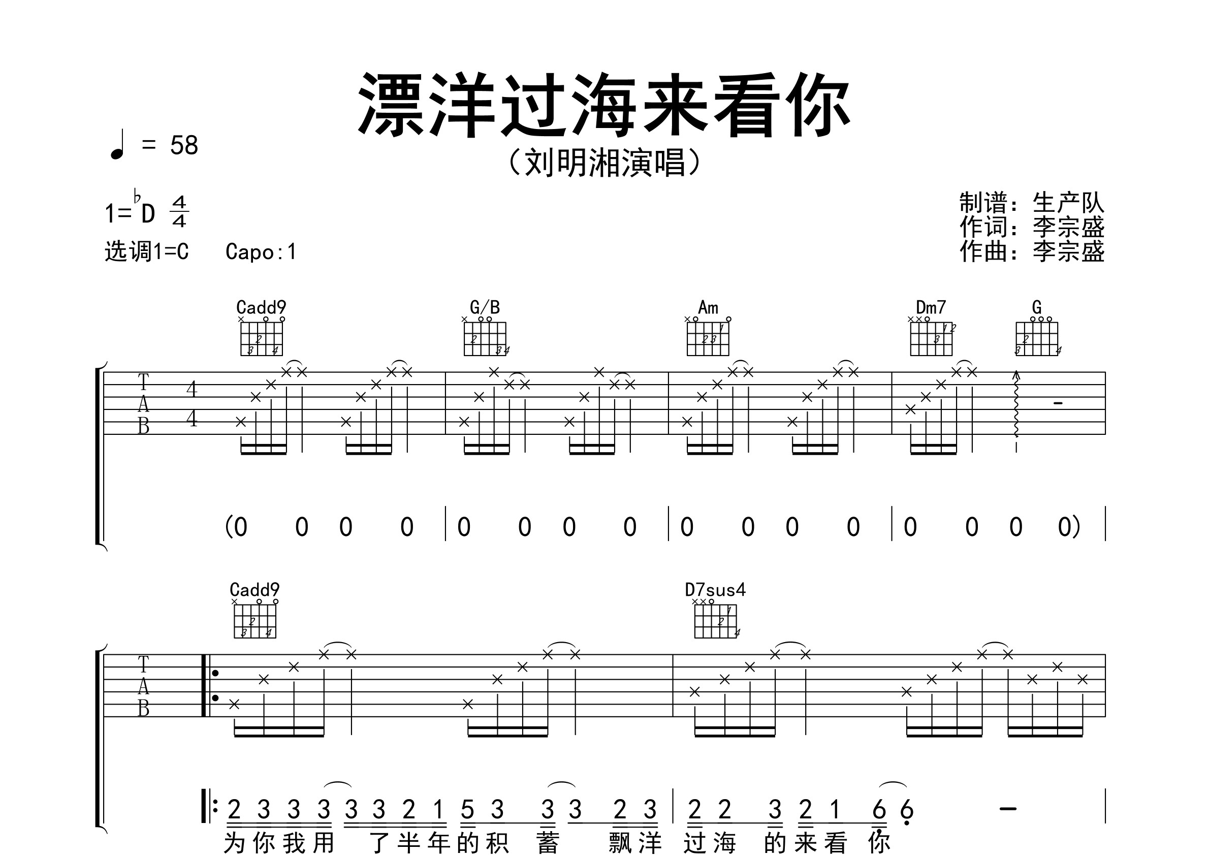 漂洋过海来看你(原版吉他谱)【怀旧经典】